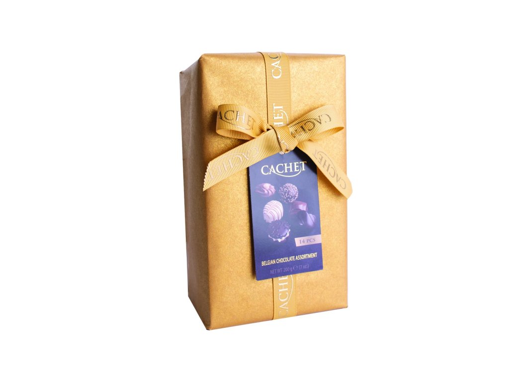 Belgické pralinky Cachet - Směs zlatá s mašlí, 200 G