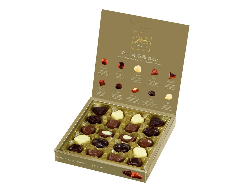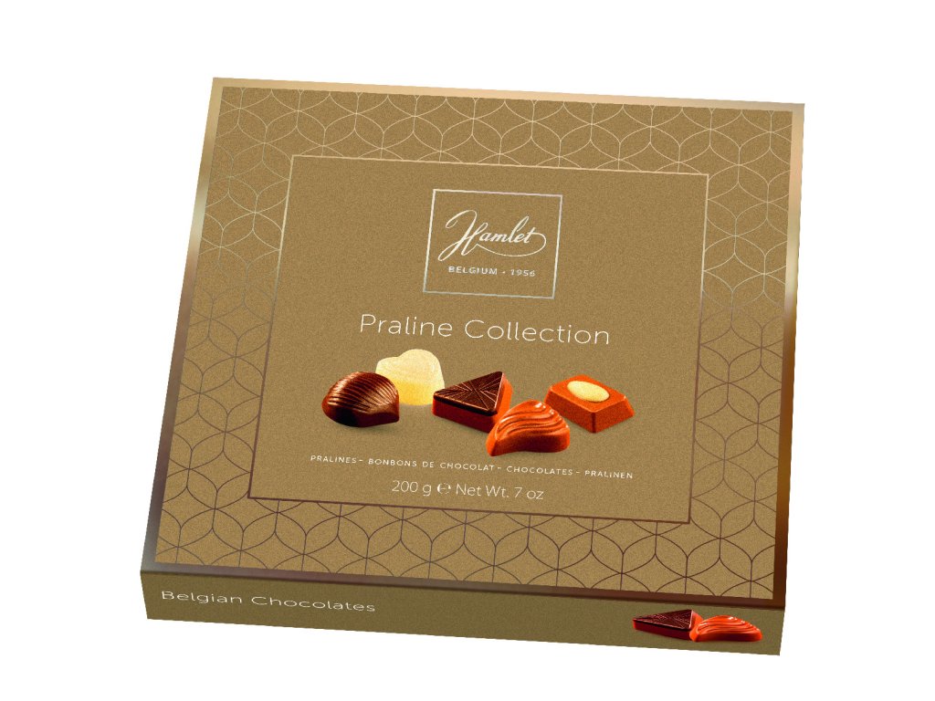 Belgické pralinky Hamlet Luxury Box - Zlaté s dárkovou taškou, 200 G