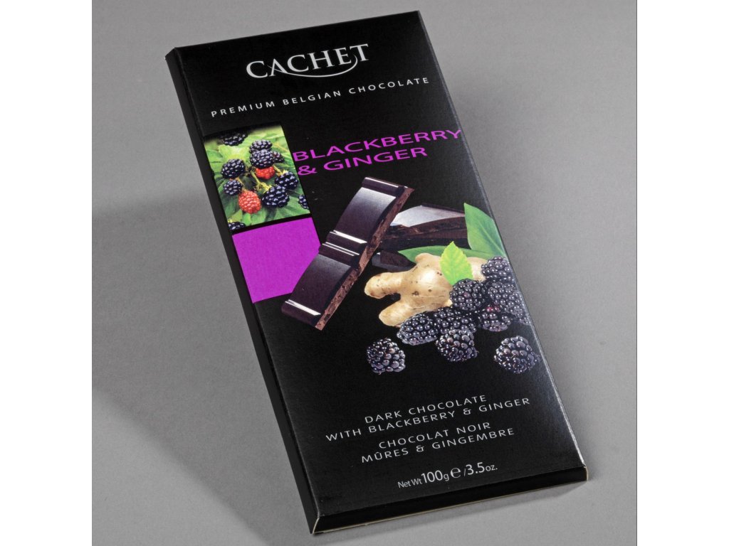 Tabulková čokoláda Cachet - Hořká s ostružinami a zázvorem, 100 G