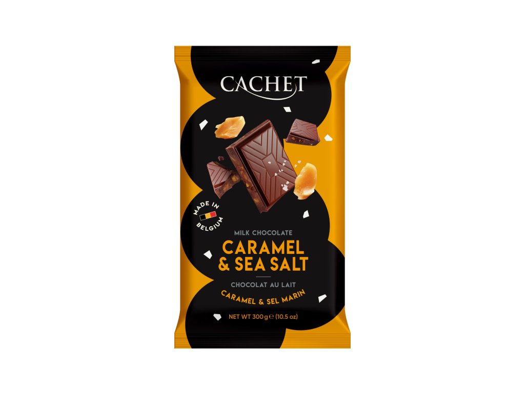 Tabulková čokoláda Cachet - Mléčná s mořskou solí a karamelem, 300 G