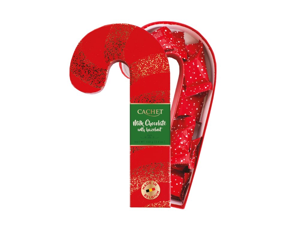 Belgická čokoláda Cachet Candy Cane - Mléčná s lískovými ořechy, 100 G