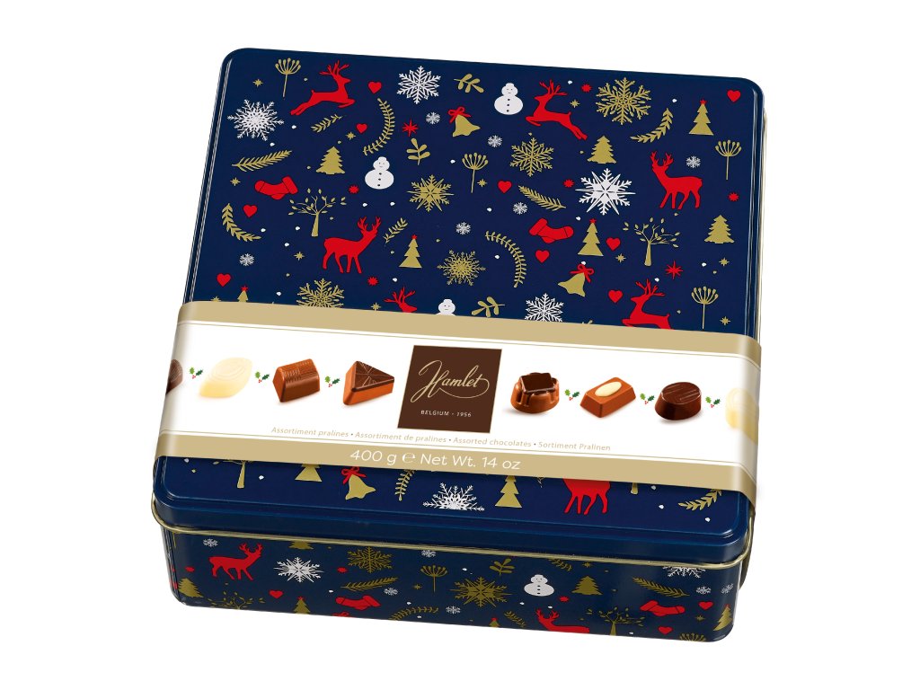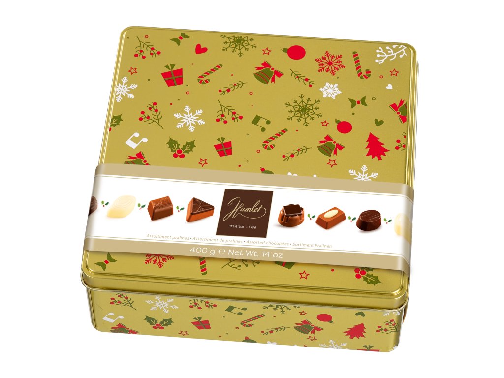 Belgické pralinky Hamlet - Vánoční pralinky v plechu, 400 G