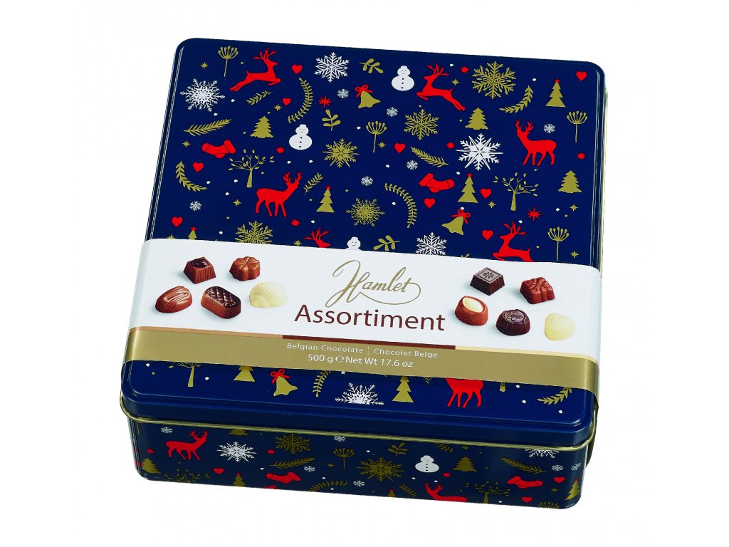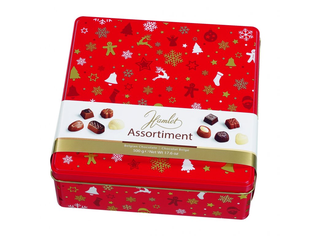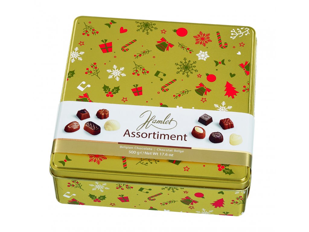 Belgické pralinky Hamlet - Vánoční pralinky v plechu, 500 G